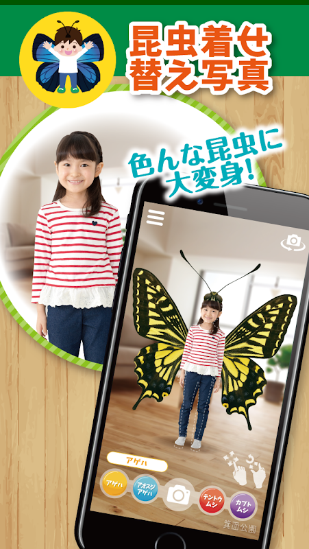 가상에서 다양한 곤충으로 대변신! 곤충의 사진은 확대하거나 회전 할 수 있기 때문에 여러 포즈에 도전 해보십시오.