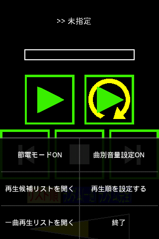 一曲再生リストはメニューまたは画面上のファイル名(または「未設定」)をタッチする事で開けます。