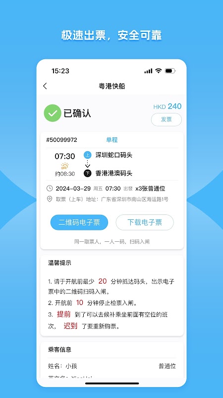심천, 광저우, 중산, 주하이, 포산, 순더, 둥관 및 기타 도시에서 홍콩, 홍콩 공항 및 마카오를 오가는 티켓을 포함하여 홍콩과 마카오에서 광동의 여러 도시를 오가는 고속 여객 페리 티켓 예약을 제공합니다.