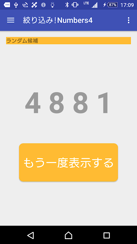 候補数字は、リスト形式で一覧表示したり、候補数字からランダムに表示することもできます。