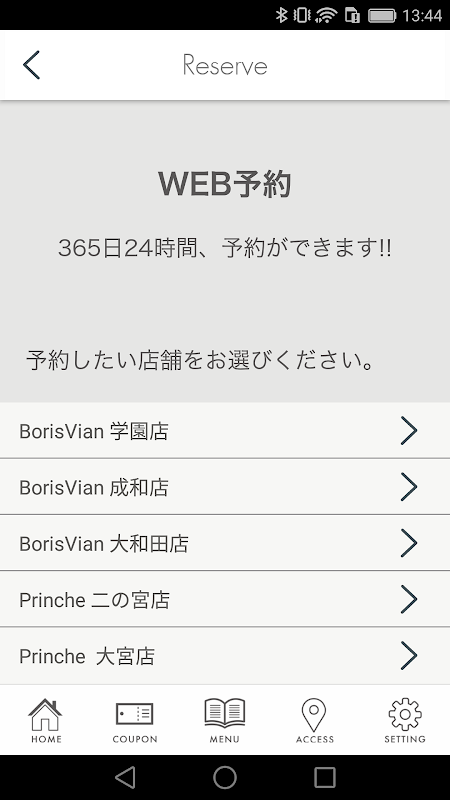 ボリスビアン学園店、成和店、大和田店、トータルビューティーサロンプリンシェ二の宮店、大宮店の計6店舗の公式アプリが出来ました。