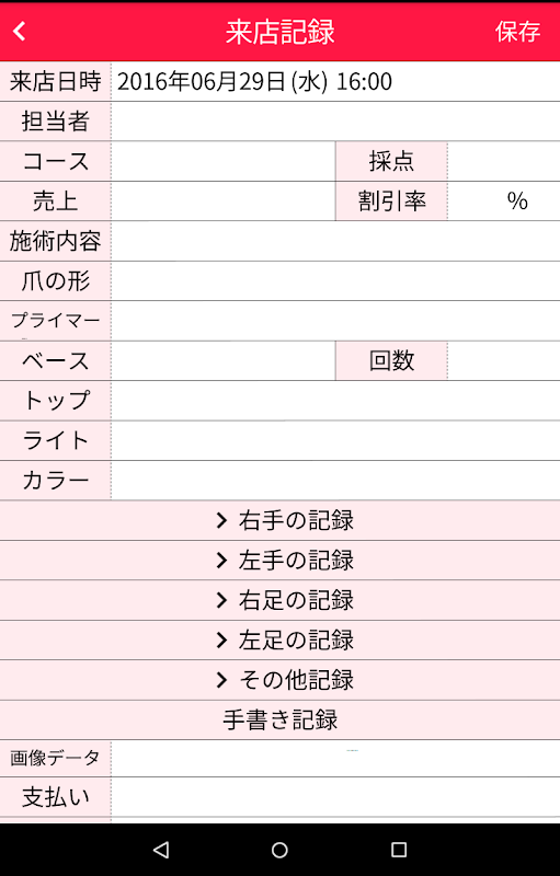 네일 살롱에서의 진료 기록 카드 및 고객 관리에 특화된 어플입니다