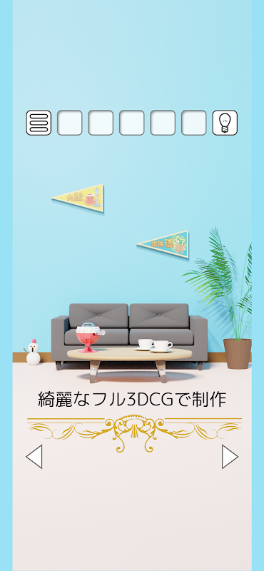 フル3DCGで描かれた美しいグラフィックとBGMで楽しめる脱出ゲームです。