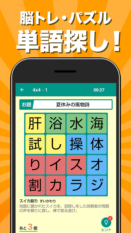 찾아 상쾌, 읽고 납득, 버릇이 되는 재미의 단어 게임을 지금 시작하자!