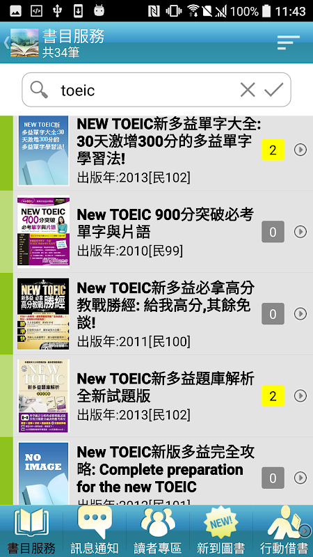 國立臺灣戲曲學院行動圖書館,提供讀者輕鬆快速地取得圖書館的相關資訊。包括館藏查詢、新到圖書、讀者專區、訊息通知、教師指定參考書及常用電子資源等。登入帳號及密碼驗證後,還可享有查詢個人借閱狀況、預約/跨校調閱、續借等個人化服務。快來體驗喲!