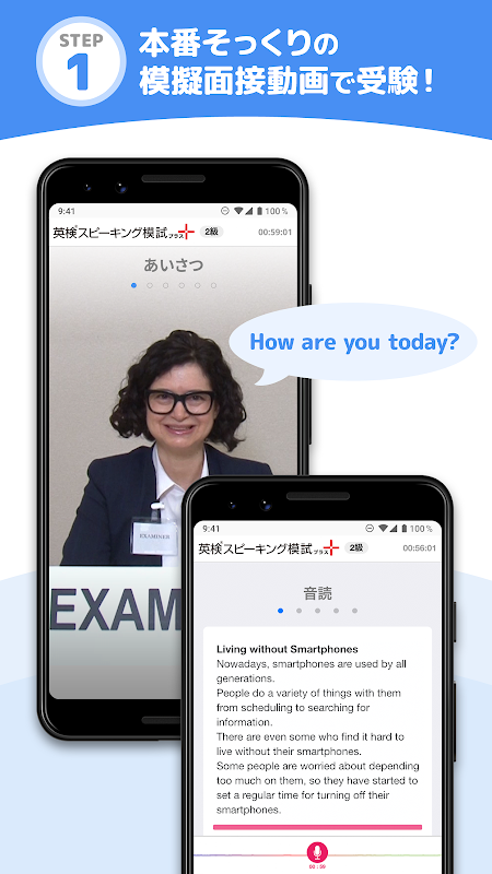 실제 모의 시험에서 약점 진단, 대책 수업까지 앱에서 완결 할 수있는, 완전히 새로운 영검 ® 2 차 시험 (말하기 시험) 대책 서비스입니다.