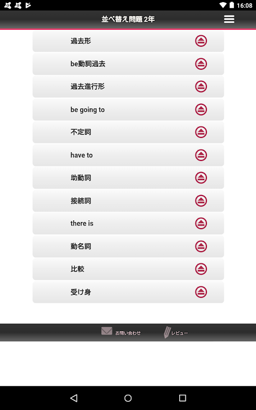 과거 진행형, 조동사, 부정사, 접속사, 비교 등의 영문법을 단원으로 나눠 기본 문제입니다. 정기 테스트 전 확인에 또 수험 기초로 약점의 발견에 도움이 응용 프로그램입니다.