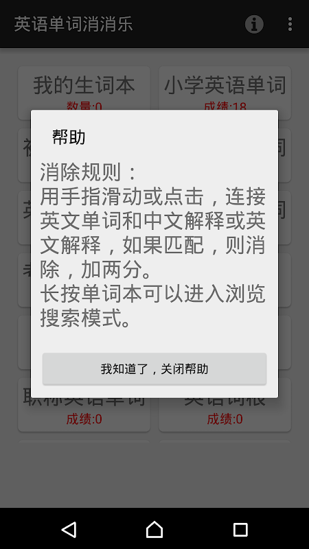 连接相关单词,匹配则消除,得分,获取帮助减分。