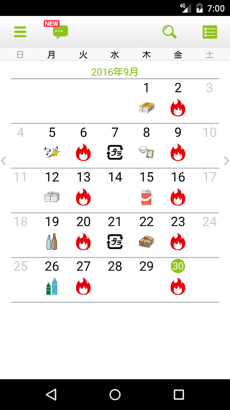 収集日変更のお知らせやイベント情報などを確認することができます。