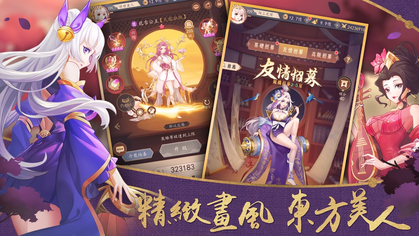 Xianfan 대결, 많은 영웅을 사용하여 자유롭게 매치하고 모든 종류의 상대와 경쟁하여 정상에 도달하고 최고의 개인 명예를 위해 노력하고 끝까지 싸우십시오! 더 풍부한 육포 시스템, 갓 스톤 시스템, 비문 시스템이 있으며 다양한 전투에서 원하는대로 라인업을 조정할 수 있습니다.