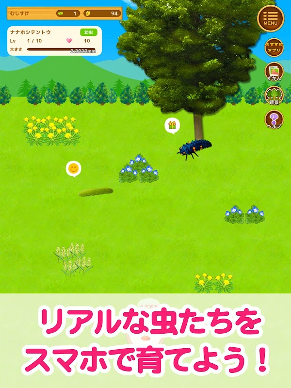 "벌레 육성 게임 むしいく"는 "벌레를 육성하는 즐거움"과 "벌레가 살아 남기 어려움"을 체험 & 배울 수있는 게임입니다.