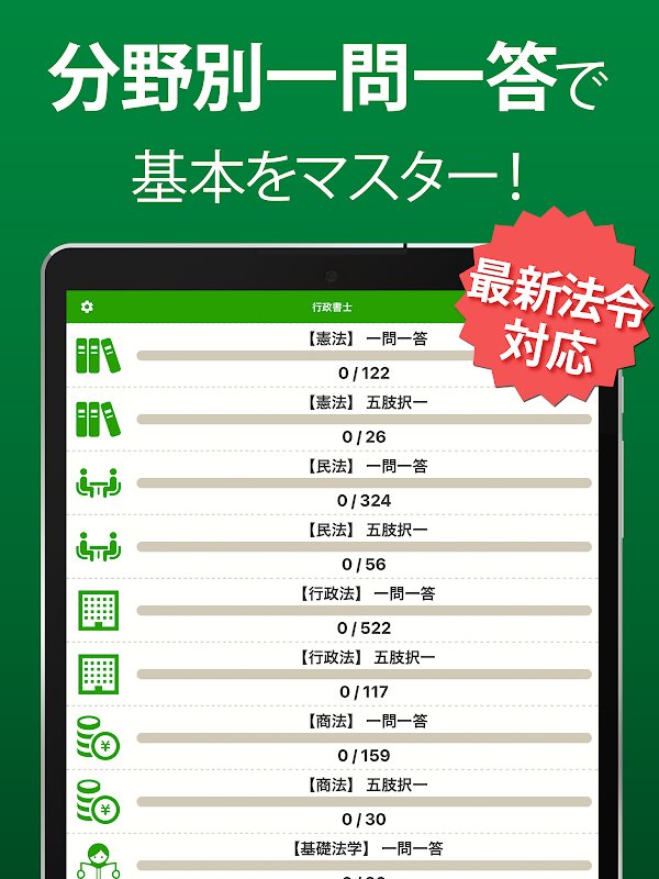 궁극의 행정 서사 문제집 앱! 기본의 일문 일답으로부터, 분야별 5택, 10년분의 과거문 연습까지, 충분히 2468 문제!