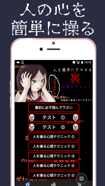 あらゆる人の心理を操るメンタリズムこのアプリは裏ワザ心理テクニックを駆使してあなたの心理を操ろうとします。数々の心理操作術であなたも必ず暗示にかかります。