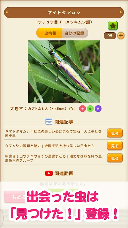 「관련 기사・관련 동영상」으로부터 벌레의 특징이나 매력을 볼 수 있어요.