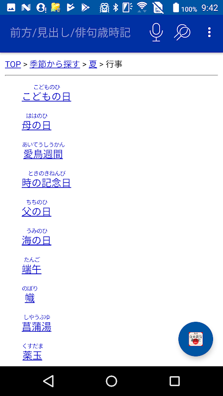 종래의 계절·분야는 물론, 계절의 진행에 맞춘 “첫·중·밤” “상순·중순·하순”의 계절 구분으로부터도 좁힐 수 있습니다.