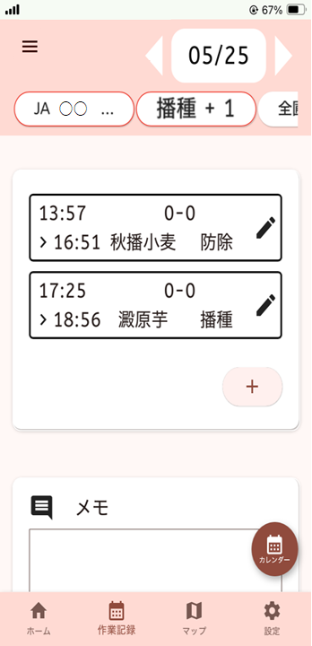 ・농장내 작업의 개시와 종료를 판정해, 농 작업 기록을 자동 생성할 수 있습니다.