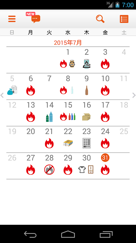 今日と明日、週ごと、月ごとの3パターンによるごみ収集日程を一つの画面ですぐに確認することができます。