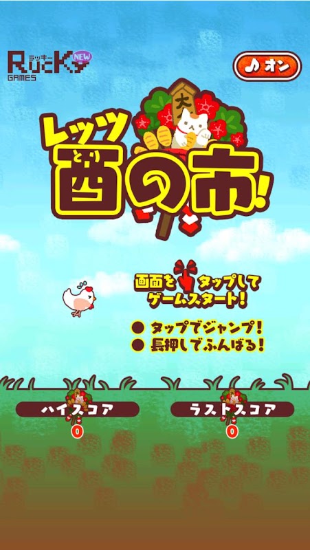 画面を触っている間はにわとりは踏ん張ります、離すとジャンプします。