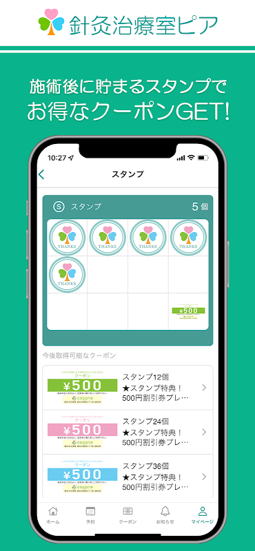 앱을 통해 바늘 뜸 치료실 피어의 새로운 정보와 거래를받을 수 있습니다. 또, 언제라도 수중의 스마트 폰으로부터, 메뉴나 희망의 시간대의 체크・예약등이 가능합니다. 어플을 인스톨 해 주시는 것으로 바늘뜸 치료실 피어를, 보다 편리하게 가까이에 이용해 주실 수 있습니다.
