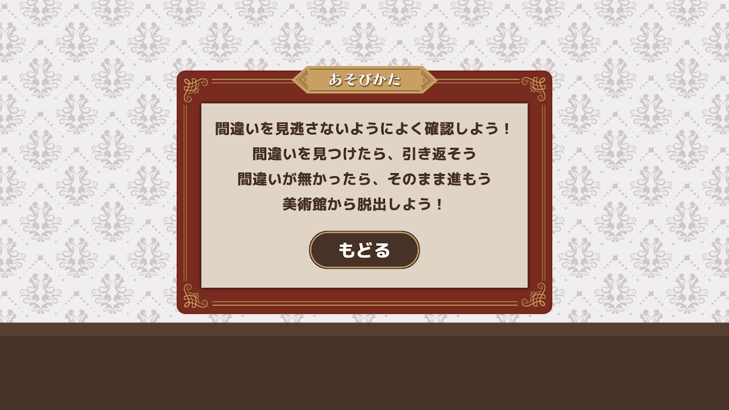 뮤지엄 건물 내에서 두 가지 다른 장소를 찾아 올바른 상태로 고치고 탈출을 목표로하는 간단한 게임!