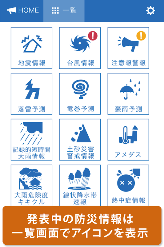 발표중인 방재 정보를 HOME으로 속보 표시합니다.