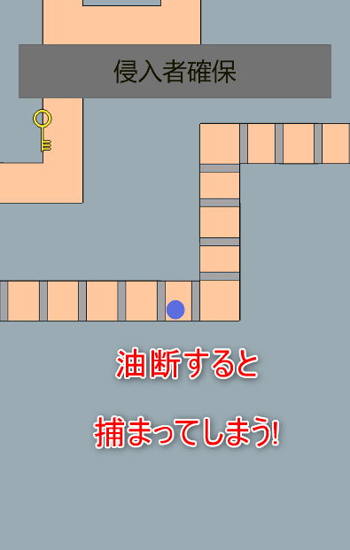 이 미로에서 침입자의 경계 태세는 2 단계로 나누어