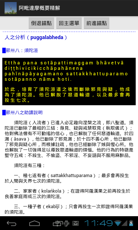 一部中世纪的佛教手册《阿毗达摩概要》,如今已成为上座部佛教最重要及最具影响力的课本之一。在厚约只有五十页的九章里,提供了佛教里最为深奥的《阿毗达摩论》的基本概要,也是所有南亚与东南亚上座部佛教国家修学阿毗达摩的标准入门书。