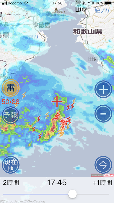 ・雷ボタンを押せばどこに雷が落ちているのか判ります。落雷回避にお役立てください。