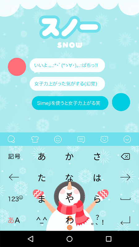 Simeji(日本語文字入力&顔文字キーボード)のきせかえテーマ「スノー」です。