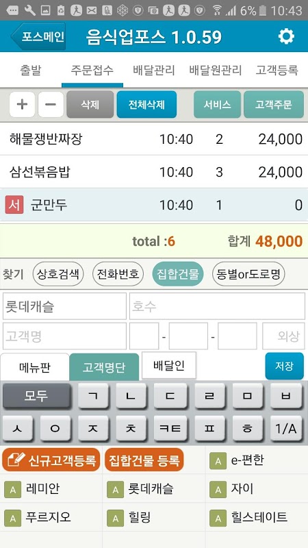 ■배달음식업의 경우 동별,아파트별 매상집계 기능 ■시작자금 입력 및 마감자금 계산 기능