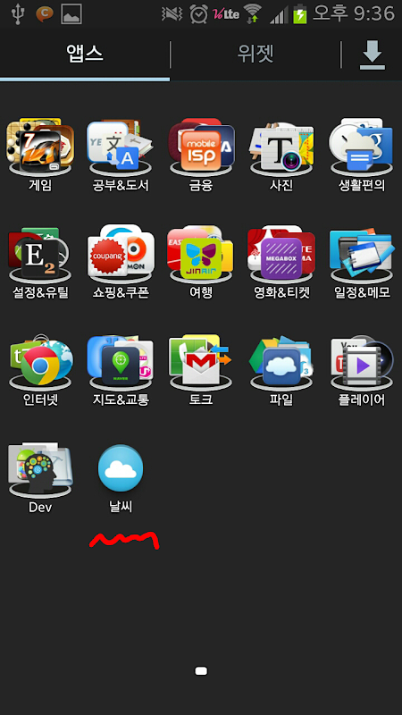 갤럭시 노트2의 기본 날씨 위젯을 제공하지만 일반 앱 형식으로 제공하지 않습니다. (앱스 목록에 없음)