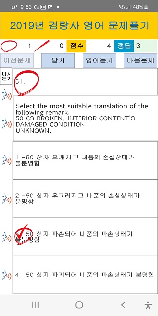 2019년 검량사는 음성으로 문제를 읽어주고 문제를 풀고 틀리면 틀린문제만 다시풀어보는 도장깨기 오답노트 기능추가