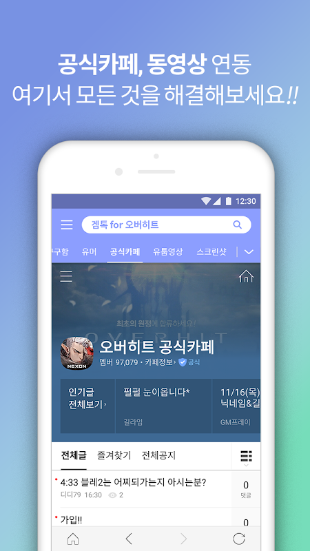 오버히트 유저들을 위해 ‘모바일에 가장 최적화된 커뮤니티 겜톡 for 오버히트'가 출시 되었습니다.