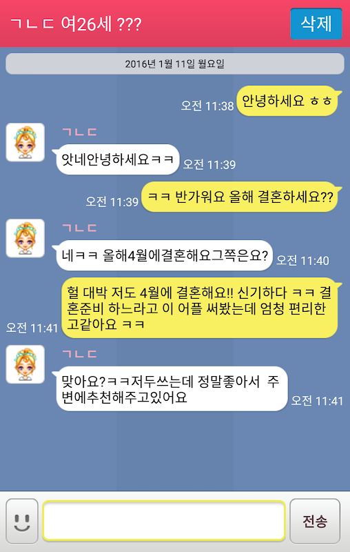 - 다른 회원들과 결혼정보를 교환하기 위한 토크