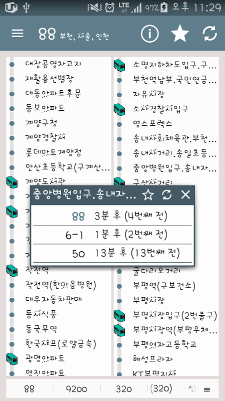 한 화면에서 정류장과 지도 정보를 모두 보여줍니다.