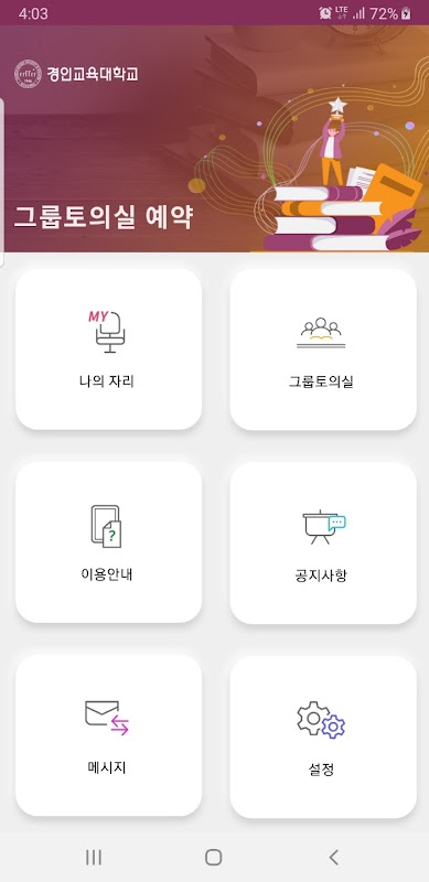 경인교육대학교 이용자들의 이용 편의를 위하여 제작한 어플리케이션으로 아래와 같은 서비스를 제공합니다.