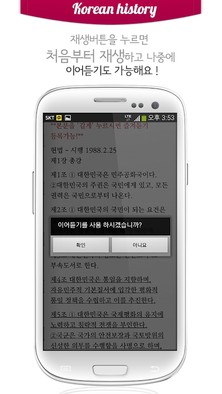 7. 이어듣기 기능으로 언제든지 이어서 들을 수 있습니다.