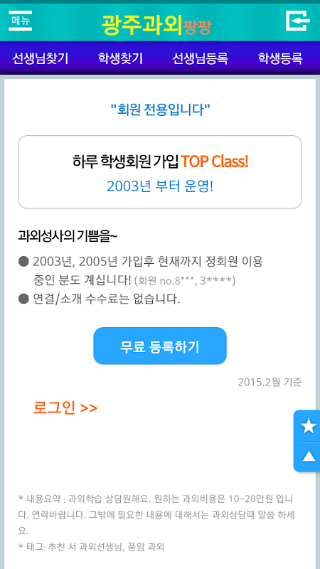 APKPure는 바이러스 없는 광주과외팡팡 - 광산구, 북구, 전남대, 과학, 논술, 영어, 수학, 광주광역시 과외선생님 APK 다운로드를 위해 서명 확인을 사용합니다.