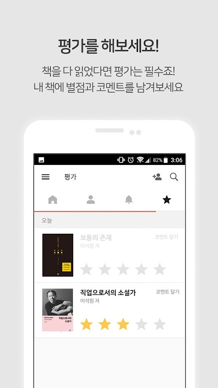 인상 깊은 책에 별점을 남기고 감상평을 나눕니다.
