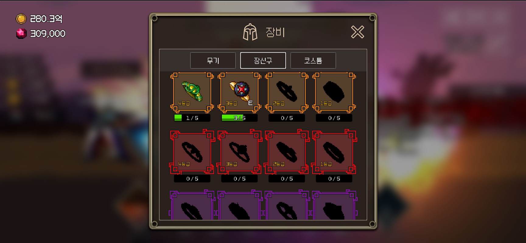 매일 매일 쏟아지는 보상으로 무기와 장신구를 뽑아 강해지세요