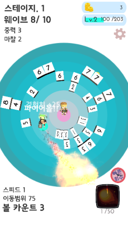 ★네번째로, 빠른 회수 버튼이 있는데요. 이걸 터치하면 공이 빠르게 회수가 되니, 더 이상 깨뜨릴 불럭이 없을 경우, 과감하게 눌러주세요.