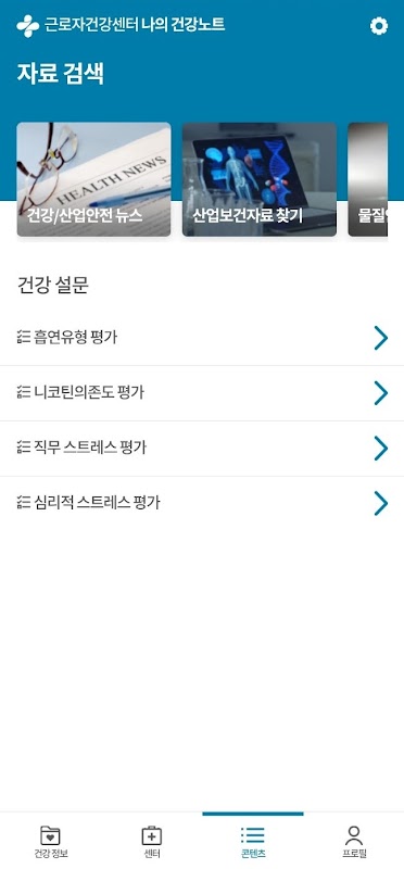 근로자 건강관리 지킴이 "나의 건강노트" 혈압, 혈당 등 건강정보를 관리하고, 근로자건강센터 및 분소의 모바일 서비스를 제공받으실 수 있습니다.