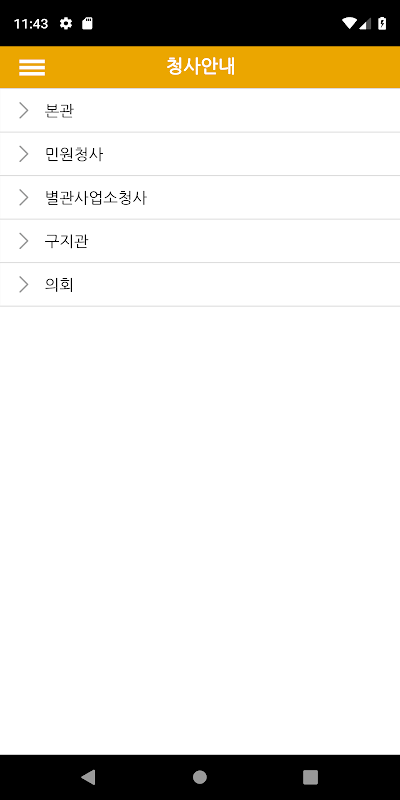 - 청사안내 : 시청사 부서별 배치현황 제공