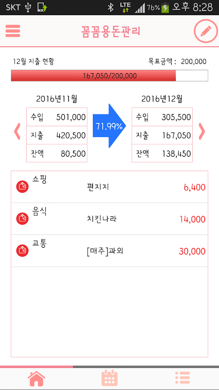 간편하고 간단하게 사용할 수 있는 용돈기입장 입니다^^ 달력위젯에서 바로 입력!! 깔끔한 통계!! 바로 사용해 보세요^^