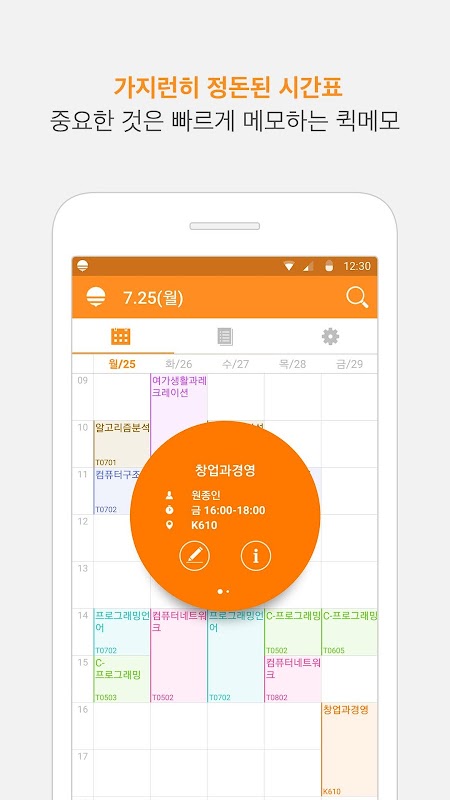 - 가지런히 정돈된 시간표를 한눈에