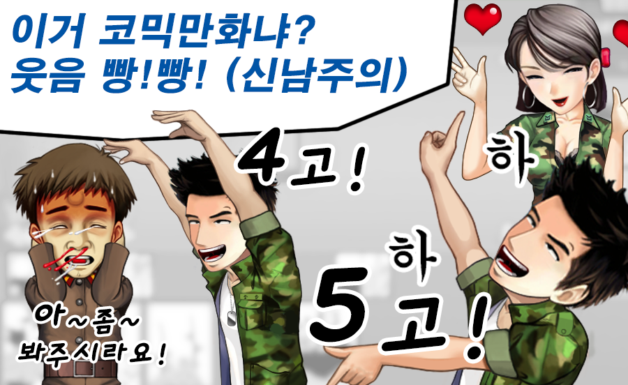 남한북한 병사들이 맞고대결을 펼치는 유쾌코믹한 온라인 맞고게임 입니다.