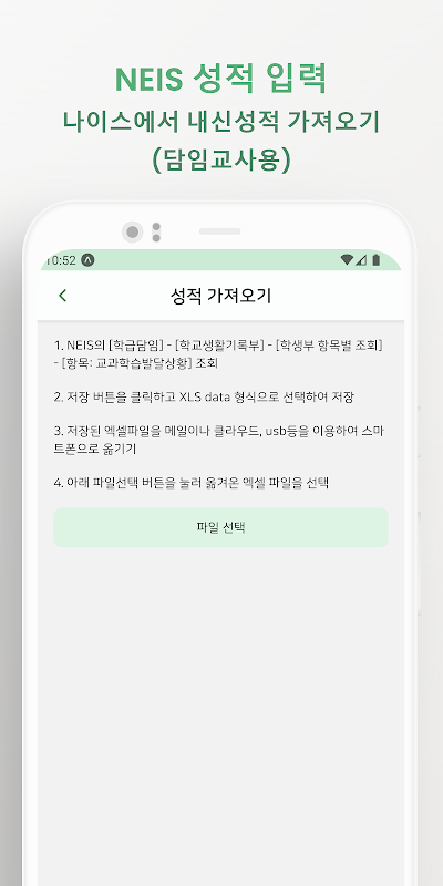 나이스의 생활기록부 성적을 엑셀파일로 앱에 업로드