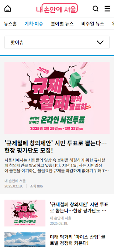 시민의 손에서 시민과 함께 만드는 공공기관 최초의 모바일 소통형 플랫폼! 내 손안에 서울