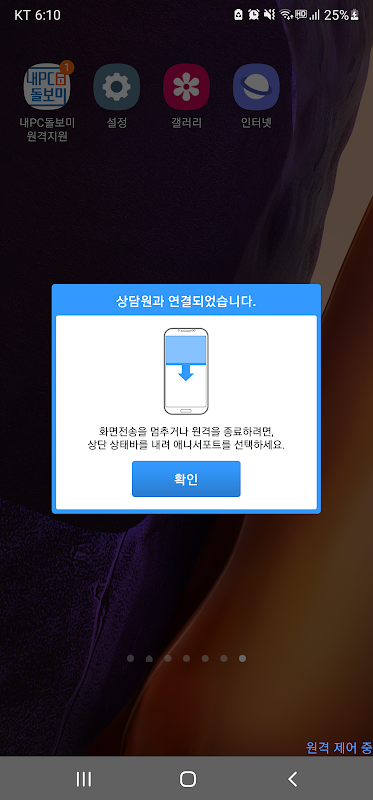 내PC돌보미 원격지원은 상담원이 고객님의 화면을 직접 보면서 문제를 해결해 드리는 고객지원 서비스입니다.