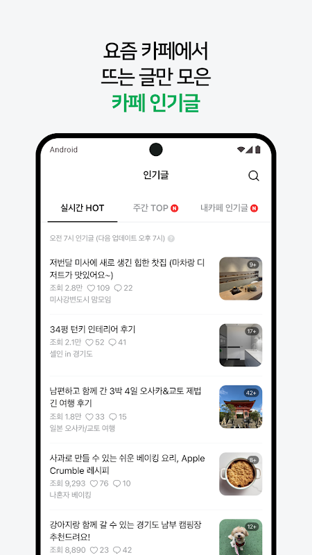 지난주 화제의 랭킹글 주간TOP, 가입한 카페의 인기글까지
